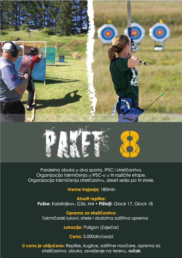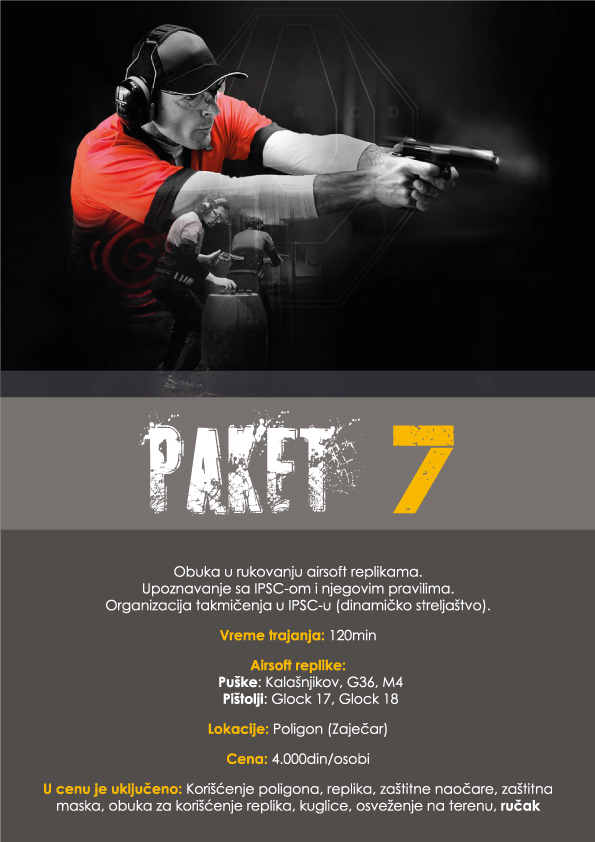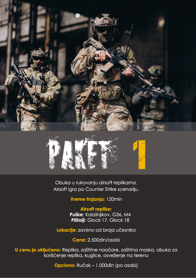 Izaberite paket koji vam najviše odgovara ili iskombinujte više paketa iz naše ponude. Paketi su podeljeni u tri grupe: Airsoft, Adventure i Poligon.