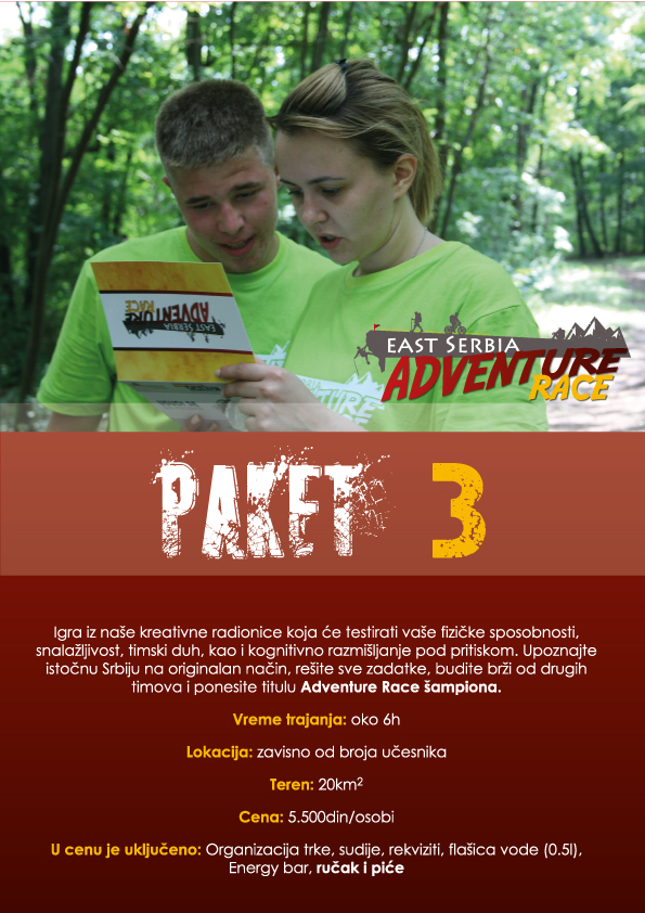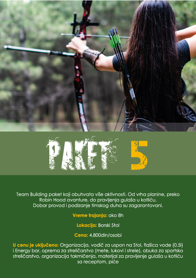 I upravo imajući ovu priču u vidu, naš tim je sastavio ponudu paketa za Team Building koji će zaista da podigne vaš timski duh na jedan viši nivo, a ujedno i da testira vaše individualne sposobnosti i fizičku spremnost.